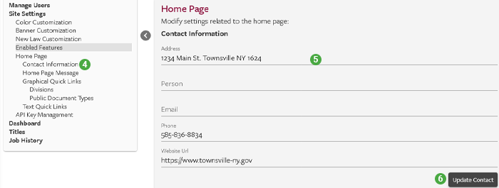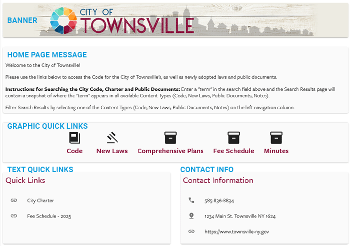 Link to specific places internally on your eCode360 site or externally on your municipal website or other websites. To view the changes on your Home Page, click the Home button on the left navigation panel.