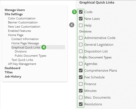 Provide quick access to the most frequently accessed places on your eCode360 site. To view the changes on your Home Page, click the Home button on the left navigation panel.