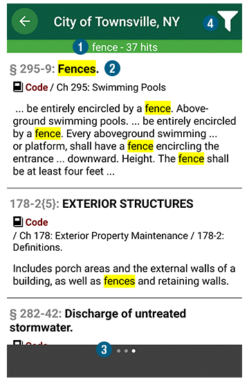 - Tap on any of the search results to open the result in eCode360 and read additional Code detail for that search.