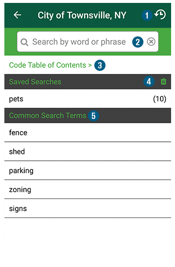 The eCode360 Search™ App maintains a history list of Codes and searches for quick access to your most commonly referenced Codes.To access a previously-viewed code, do one of the following: